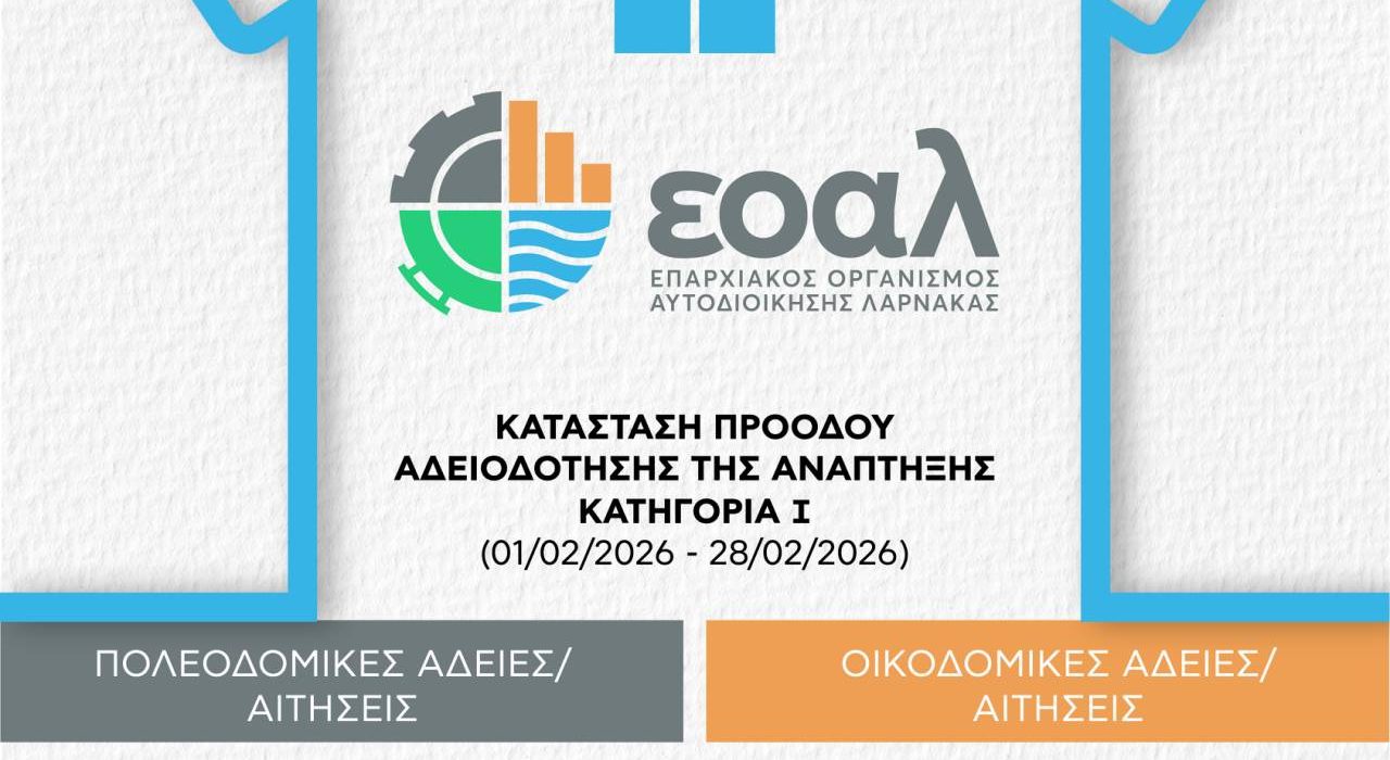 Σύμφωνα με επίσημα στατιστικά στοιχεία, για την περίοδο Σεπτεμβρίου 2025 – Φεβρουαρίου 2026, ο Τομέας Πολεοδομικής και ο Τομέας Οικοδομικής Αδειοδότησης του ΕΟΑ Λάρνακας παρουσιάζουν συνεχή πρόοδο στον ρυθμό διεκπεραίωσης των αιτήσεων.
