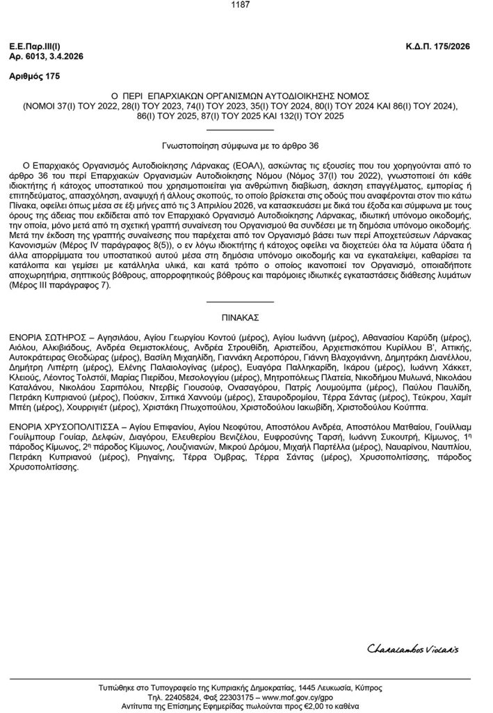 - Πρόσκληση Ενδιαφέροντος για Αγορά Υπηρεσιών Από Πολιτικούς Μηχανικούς για τη Διενέργεια Οπτικών Ελέγχων σε Οικοδομές στην Επαρχία Λάρνακας